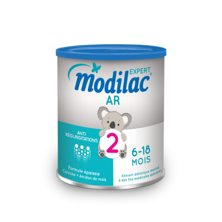 Le Lait Modilac Expert AR 2 est un lait infantile destiné à couvrir les besoins nutritionnels des nourrissons de 6 à 18 mois souffrant de régurgitations importantes grâce à sa formule épaissie à la caroube et à l'amidon de maïs. Modilac Expert AR 2 peut être utilisé, sous contrôle médical, en complément d'une alimentation progressivement diversifiée à partir de 6 mois.
