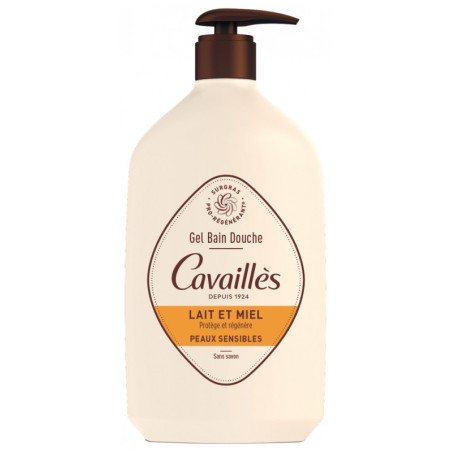 Cavaillès Gel Bain Douche Peaux Sensibles Lait et Miel 1 L est un gel lavant visage et corps élaboré pour protéger et régénérer les peaux sensibles de toute la famille (dès l'âge d'un an).